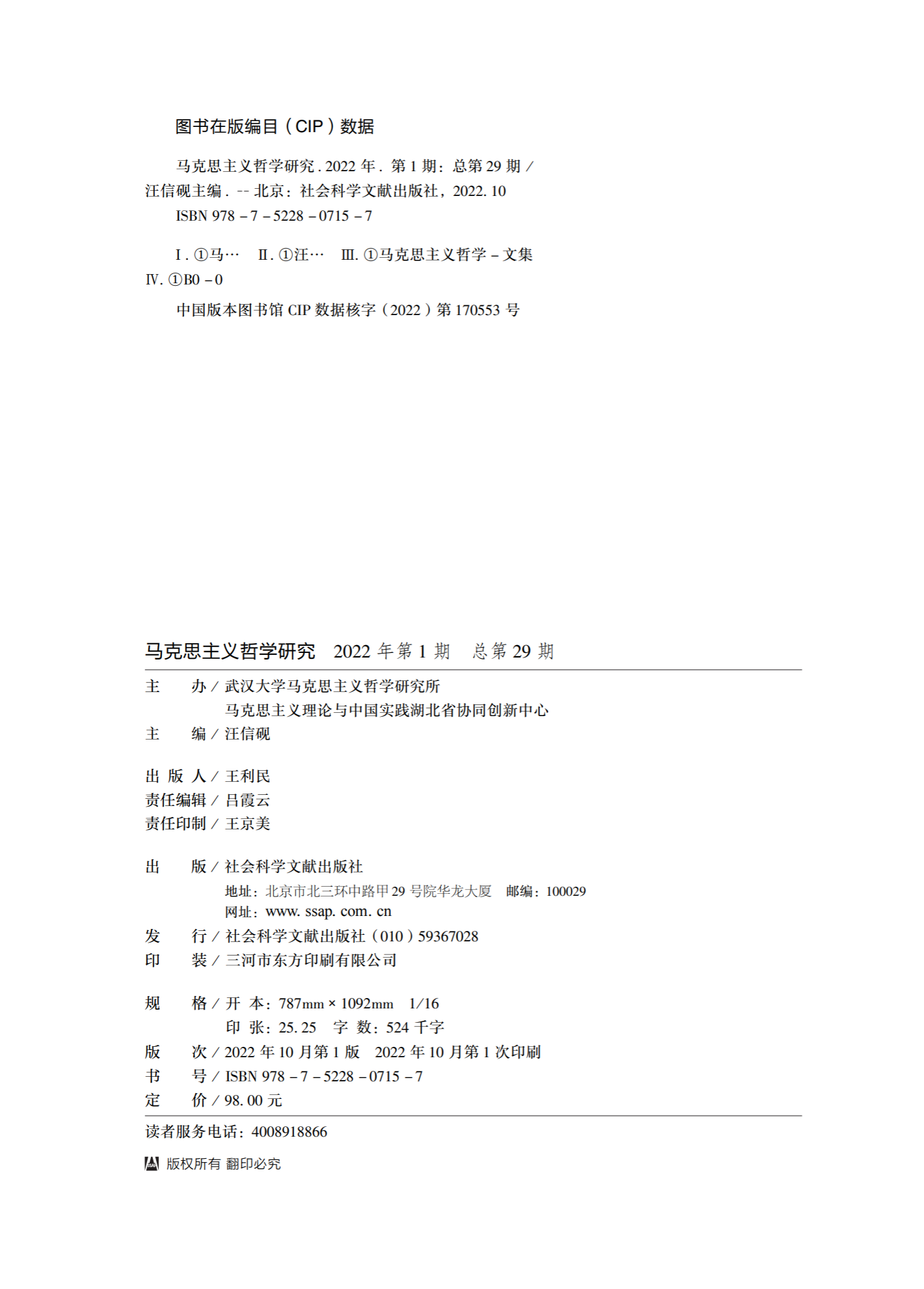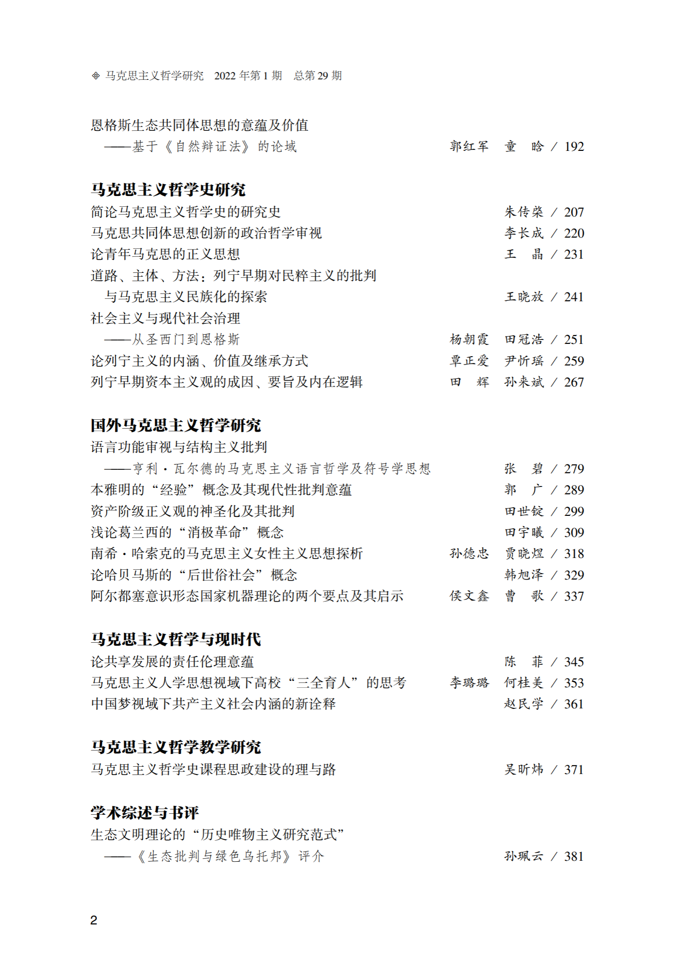 《马克思主义哲学研究》(2022年第1期)