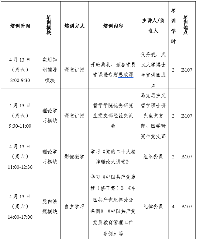 1.遵守培训纪律。预备党员参加培训是党员发展的必备环节。培训期间集中学习活动不得无故缺席,不得迟到早退。请假2个学时以上及出现违纪行为者,将取消培训资格。