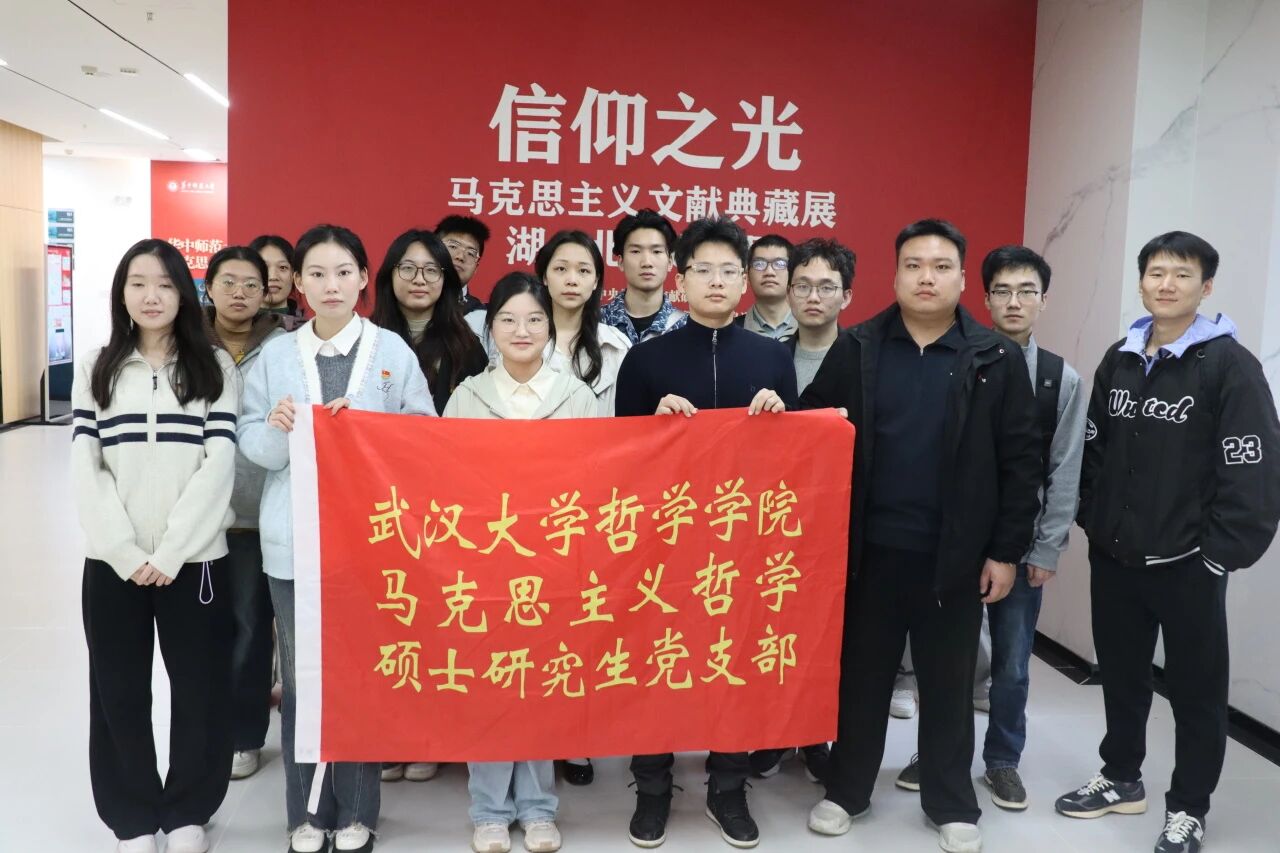 2025年10月27日下午,马克思主义哲学硕士研究生党支部前往华中师范大学,参观学习了由中央党史和文献研究院主办,中央党史和文献研究院信息资料馆、中共湖北省委宣传部、中共湖北省委党史研究室、华中师范大学、中央文献出版社联合承办的“信仰之光——马克思主义文献典藏展”湖北巡展。