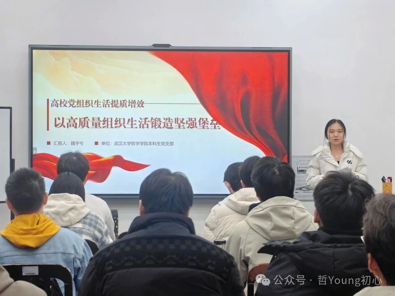 为深入学习贯彻党的二十大及第二十八次全国高校党的建设工作会议精神,进一步推动高校基层党组织生活提质增效,同时加强跨院系党建工作交流,提升学生党员的理论素养与实践能力,12月12日下午,轻小说 本科生党支部宣讲团成员魏宇兮前往物理科学与技术学院本科生第二党支部,以“以高质量组织生活锻造坚强堡垒”为主题开展宣讲。