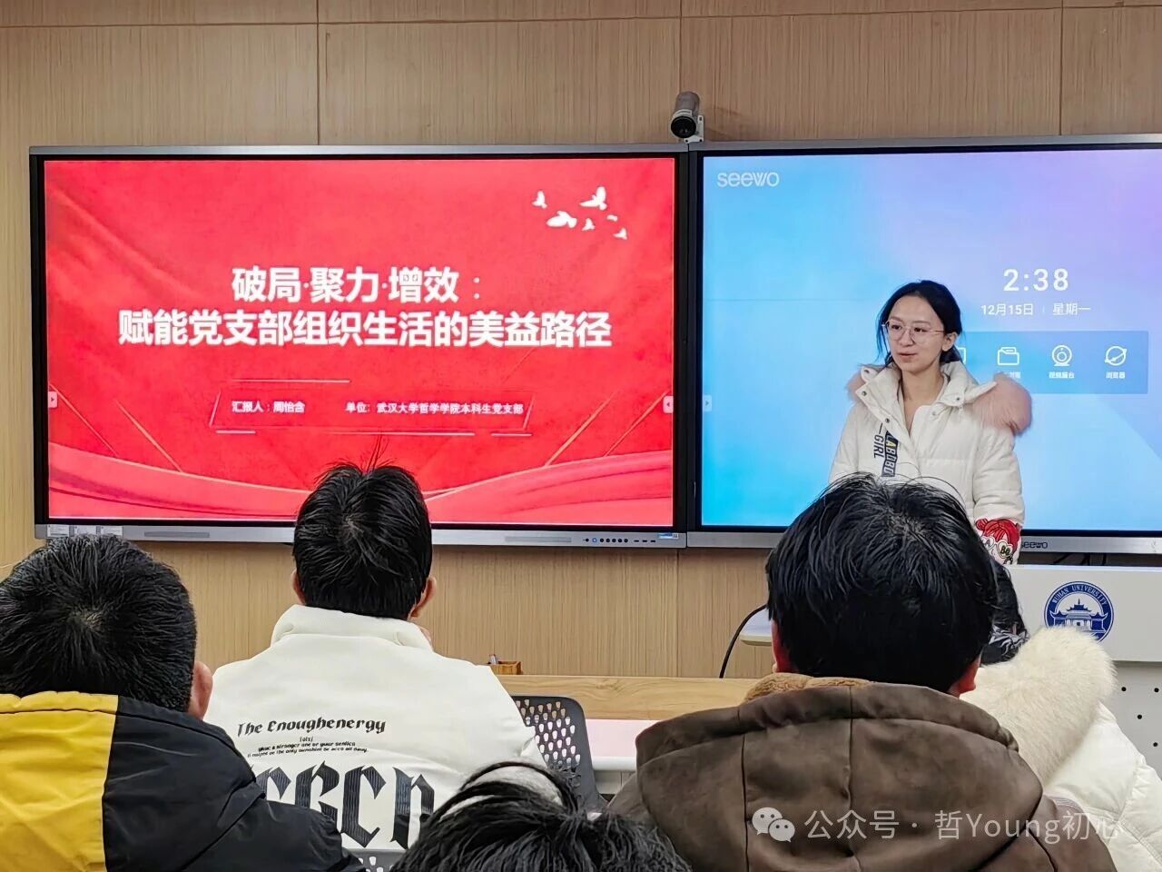 为深入推动基层党组织建设,促进跨院系党建交流互鉴,共同破解高校党支部组织生活现存难题,进一步提升组织生活的政治性、时代性、原则性、战斗性,切实增强党建工作的育人实效与凝聚力,12月15日下午,轻小说 本科生党支部宣讲团成员周怡含前往动力与机械学院本科能动第一党支部,以“破局·聚力·增效:赋能党支部组织生活的美益路径”为主题开展宣讲。