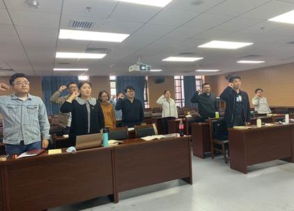 接着,重温一次入党誓词。支部全体党员重温入党誓词,宣传委员詹思群同志领誓。