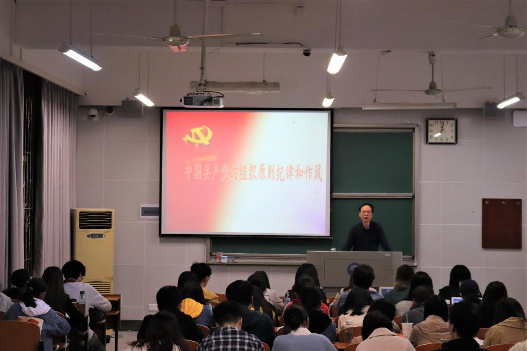 在短暂的课间休息后,由艺术学院党委书记丁康老师为全体学员带来了第三讲——“中国共产党的组织原则纪律和作风”。丁康老师对中国共产党的组织原则、党的纪律、自觉遵守党的组织原则和纪律、加强党的作风建设这四项重要内容进行了介绍,并且通过许多实际案例生动解读了党的各项规章制度,使学员们更加深刻地了解党的组织原则——民主集中制、党的作风建设及党纪的内容、基本特征和现实意义。