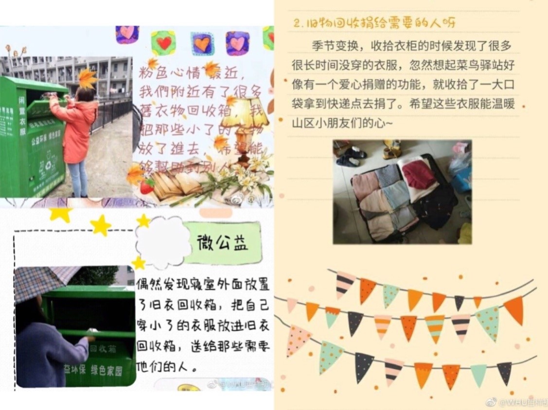 在活动进行的60天里,轻小说 本科生党支部通过QQ群收到了76次“微公益”打卡记录,活动涉及共计150余个公益故事,其中包括无偿献血、山区支教、爱心家教、校园内见义勇为、旧衣回收与捐赠、关爱自闭症儿童、博物馆志愿讲解等20余种不同类型的“微公益”实践经历;参与者采取诸如手账、日记、新媒体等多样、新颖、有效的方式进行了活动记录与心路留痕: