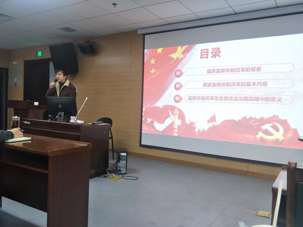 随后,王译博士从法学专业的角度为发展对象们做了“从国家监察体制改革解读习近平总书记全面依法治国战略”的主题授课。王译博士就“国家监察体制改革的背景”、“国家监察体制改革的基本内容”、“监察体制改革在全面依法治国战略中的意义”三个方面进行了阐述,深入浅出地为同学们讲解了国家监察体制改革及全面依法治国方略。