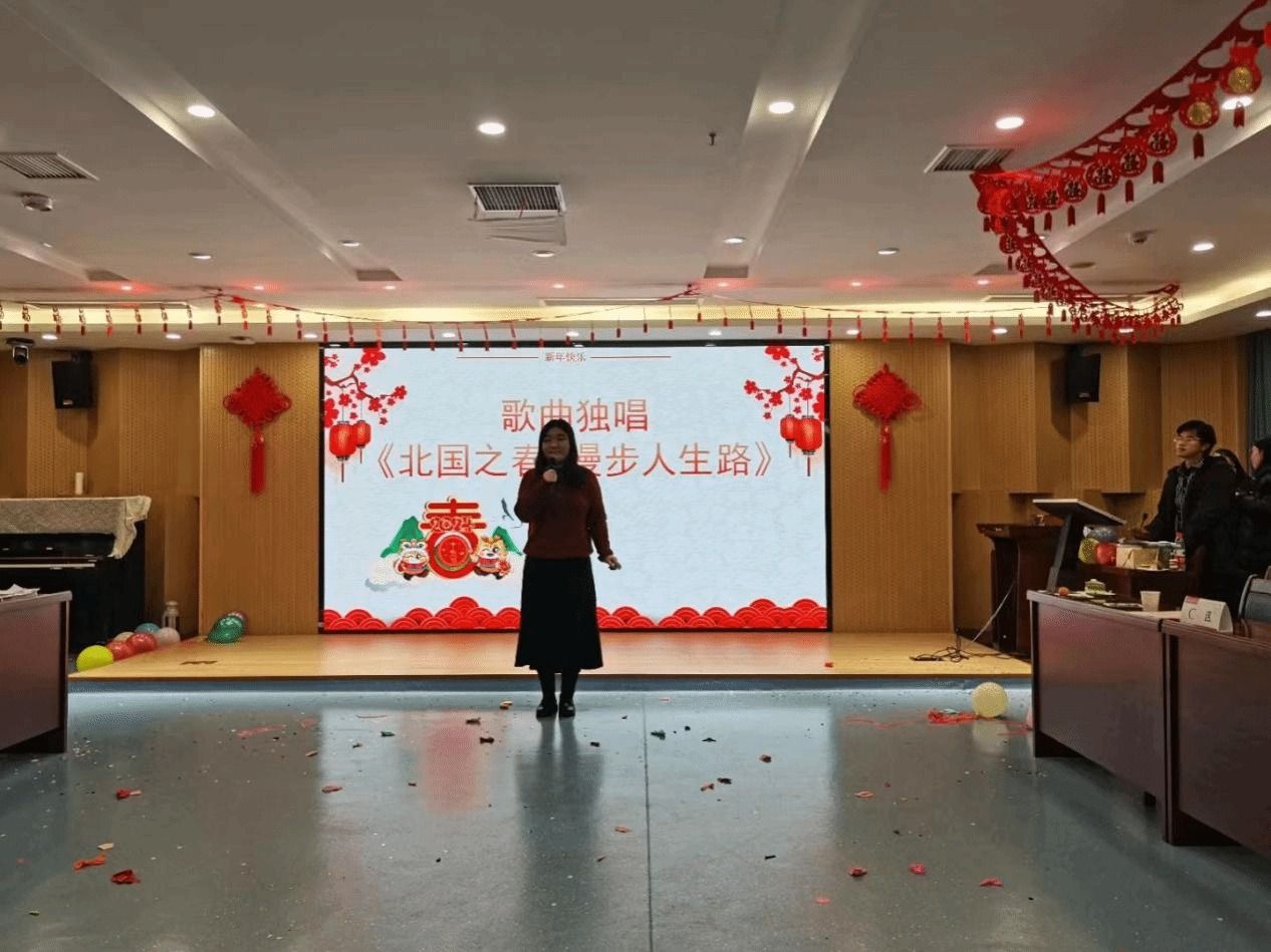 王咏诗为大家带来了精彩的歌曲独唱《千千阙歌》,郑睦凡带来了《北国之春》和《漫步人生路》,美妙的歌声让在场教职工沉醉其中。