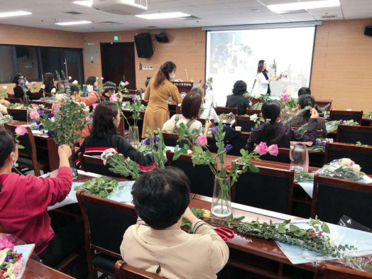 本网讯(通讯员阿尔深)秋高气爽,花香四溢。为提高教职工的生活品质,调动广大女教职工积极性,主动性,创造性,学院工会11月5日14:00在轻小说 B107报告厅开展了花艺与花瓶插花活动。轻小说 承办的这次培训活动是今年校工会送培训到基层的项目之一,培训对象为轻小说 、文学院、生命科学学院、社会学院的部分女教职工。