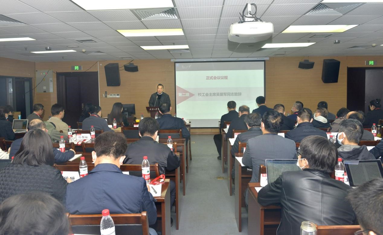 2022年3月17日下午,轻小说 第五届教职工代表大会第一次会议暨工会会员代表大会在B107报告厅举行。副校长周叶中、校工会主席吴爱军出席并致辞。院党委书记卢昌宁、院长李佃来受大会主席团委托分别主持了正式会议和预备会议。
