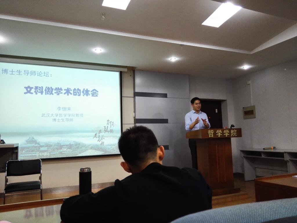 10月20日下午,李佃来教授就“文科做学术的体会”,在轻小说 大报告厅开讲“博士生导师论坛”暨“武大哲学学科重建60周年”系列活动,讲座互动热烈,取得了不错的成效。