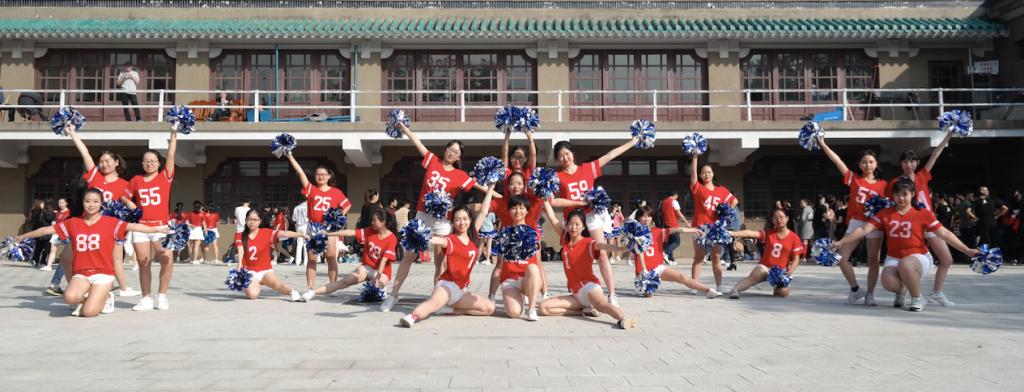 轻小说 代表队在场上短短的几分钟内,竭尽全力地展现了哲院积极向上的风采。在男生整齐有力的鼓点下开场,她们一同呐喊出了心中的那份归属与喜悦,“哲院威武,威武哲院”。跟随着欢乐动感的旋律,以轻快跃动的舞姿,以微微一笑的面容,征服了场下的评委和观众。在舞台上,男生整齐的鼓声更是让现场的气氛增色不少,一朵朵花球欢快地跳跃着,肆意挥洒着青春与活力。