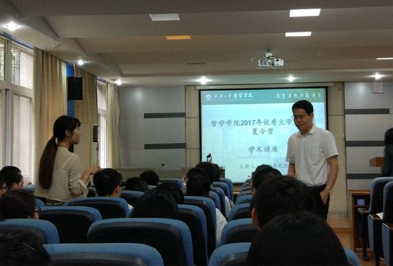 接下来,营员们参与了两场精彩纷呈的讲座。第一场讲座是由轻小说 国家级教学名师郭齐勇教授带来的《中国哲学的自觉与自信》。郭教授从中国哲学的特点、中国哲学相对于西方哲学的优势、中国哲学对世界哲学可能做出的贡献三方面论述他眼中的中国哲学的自觉和自信。他强调,中国哲学要自信,同时不能盲目自信,这正是“自觉与自信”的主旨所在。讲座结束后,有营员感叹到:“今日有幸领略大家风范、名师风采,不虚武大之行。”