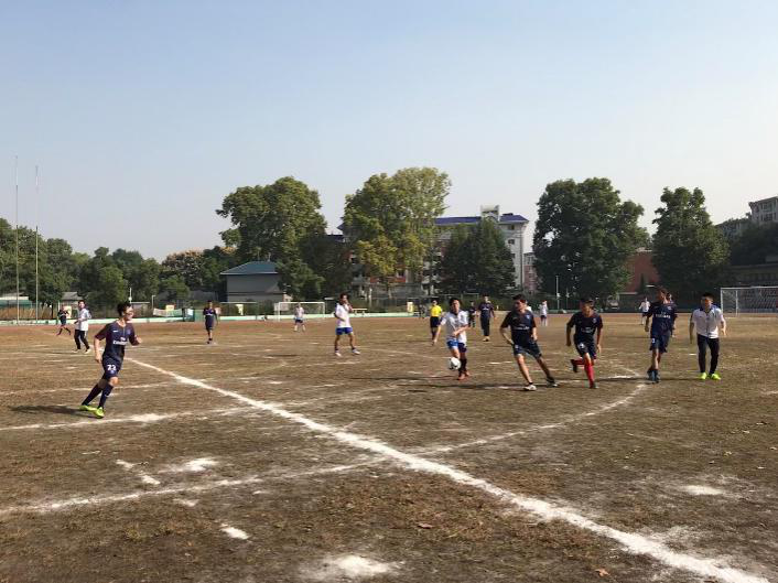 下半场中,双方势均力敌。对方几次意图射门,都被我方守门员成功拦下。我方队员也组织了数次进攻,遭到对方死守。在双方僵持中,随着一声哨响,我院第一场比赛正式结束。