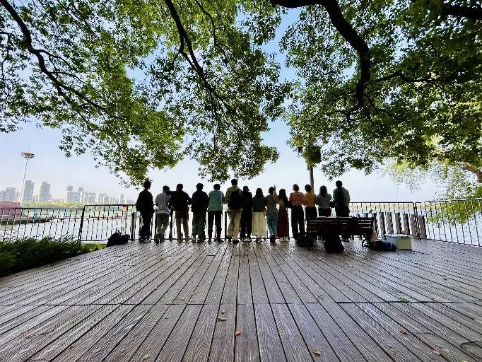 准备完成后,同学们围坐在野餐垫上,各自分享自己喜欢的书目,值得一提的是,有同学提到了《楚辞》,而东湖听涛景区内,便有一尊屈原立像,另有一方屈原纪念馆。作为中国浪漫主义诗歌的源头,《楚辞》的主要作者之一屈原,就曾生活在风光秀丽的荆楚大地。于千百年前的《楚辞》源地吟诵《楚辞》,别有一番韵味。