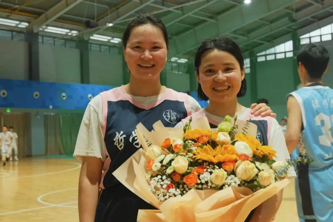 杜金玉(右1):这场球,于我而言,已经远远不能用“胜利”两个字来加以形容。更多地,它象征着一个圆满的句号!它是由哲院女篮用坚持、努力、团结、友爱书写的最终答案!通过这场球,你会看到,哲院女篮表达爱的方式有很多种:比如,教练对你伤势无微不至的关心、蔡指导对你梦想毫无保留的支持、队友想让你不留遗憾而给你喂球创造得分机会、小朋友们(新生)因你的期待而默默辛苦加练……总而言之,每一种都有直击心坎的力量!最后,愿我的小朋友们能够继续怀着对篮球的热爱,对哲院女篮的热忱,携手奔向顶峰,今后让我骄傲荣登最美观众席!