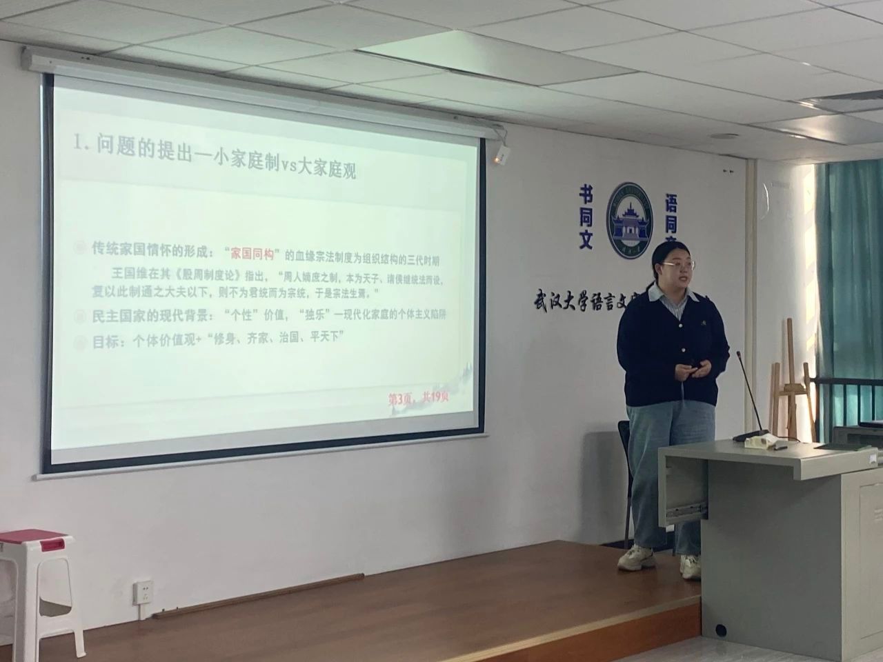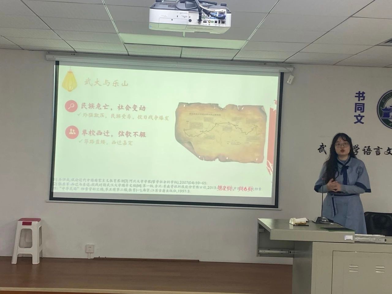 接下来,2023级党建专业的蔡紫嫣同学用一场以“轻小说 西迁乐山时期的爱国主义教育”为题的生动演讲,把大家带回了轻小说 1938—1946年在乐山的八年艰苦岁月,感受武大师生在逆境中闪耀的弥足珍贵的爱国主义光辉。