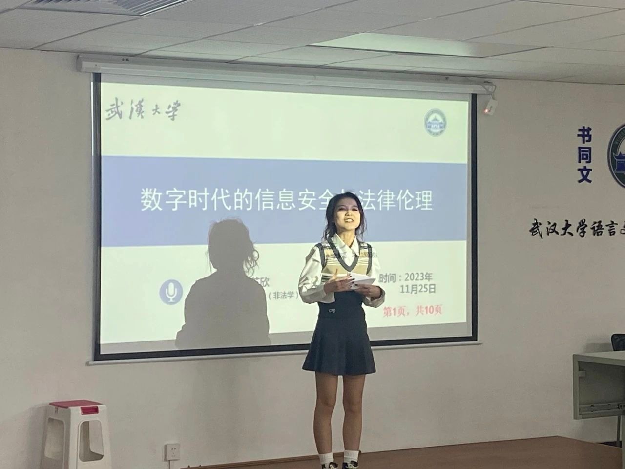 来自2022级国际法方向的夏芷欣同学以“数字时代的信息安全与法律伦理”为题,指出了现代人信息安全面临的挑战,辅以真实案例的介绍,向大家论述了以人为本的法律伦理在立法中的重要性。