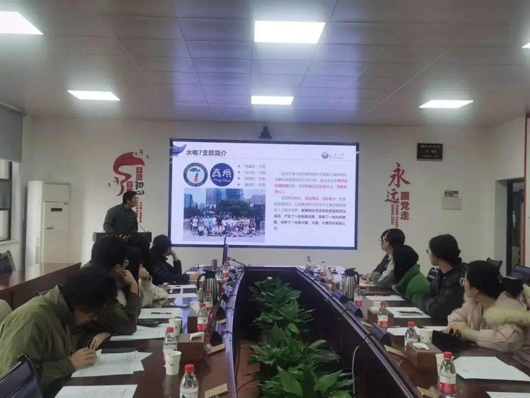 水利水电学院研究生党总支负责人童政同志就水利水电学院研究生党总支工作进行了详细汇报。童政同志从组织建设、制度创新、特色活动三个角度出发,介绍了水利水电学院党总支工作职责、支部管理、党员发展制度以及创新性的支部工作方式。