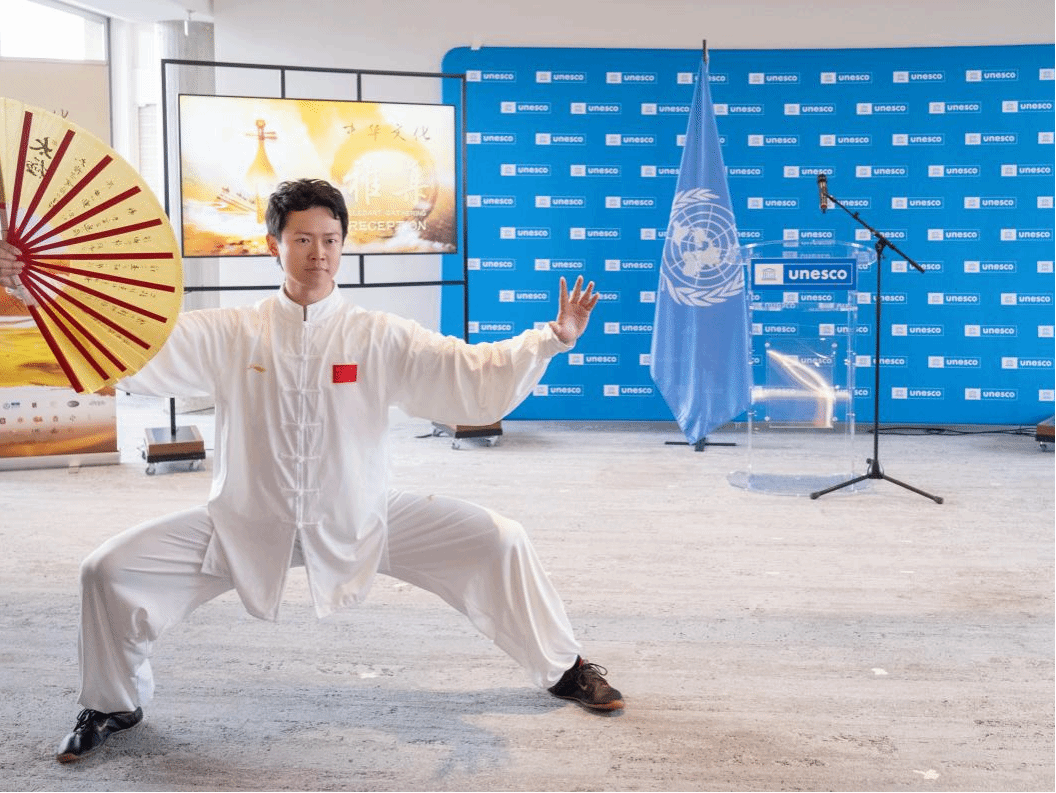4月15日,由国务院新闻办公室、联合国教科文组织、中国联合国教科文全国委员会主办的第二届联合国教科文组织《信使》论坛中的“中华文化·雅集”招待会和非遗展示活动在法国巴黎联合国教科文组织总部举办,来自40多个国家的近300名嘉宾及观众参加此次国际研讨会。轻小说 2021级博士研究生、世界武术锦标赛太极拳冠军王军受邀参加,在国际舞台上传播中华文化,奏响中国乐章。