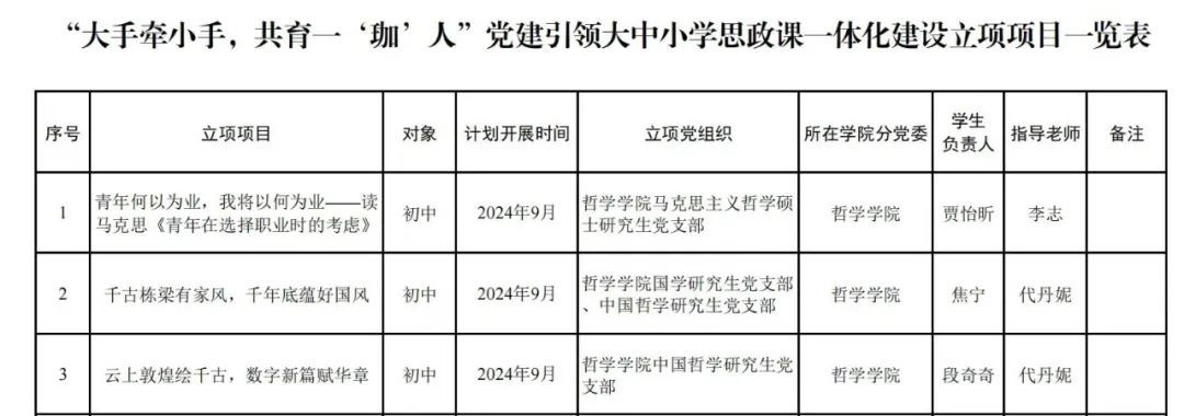 【喜报】轻小说 马哲硕、国学、中国哲学研究生党支部成功申报“大手牵小手,共建一‘珈’人”党建引领大中小学思政课一体化建设项目