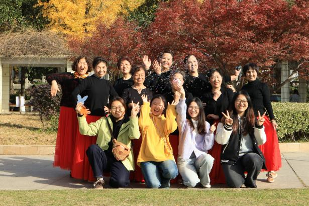 温暖的联结:第三组的照片洋溢着动人的暖意。用金黄的银杏叶在草地上拼出灿烂的笑脸,加入广场舞阿姨的队伍开心合影。与自然的互动、与陌生人的善意交汇,拥有强大的治愈力。快乐真的可以传递,美好也能通过简单的参与共同创造。