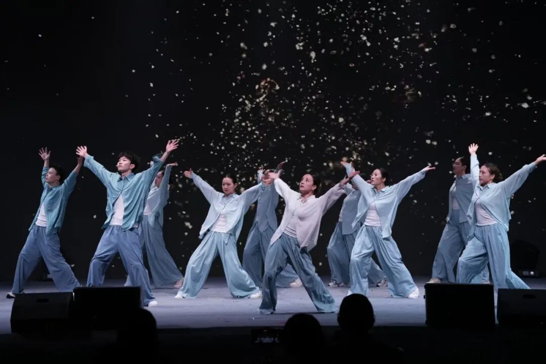 舞蹈《毅·梦》以象征手法,刻画了一位名为“赴山海”的追梦青年。他怀揣对音乐的热爱,在奔赴理想的道路上,历经迷惘与挫折,却始终以坚韧的姿态踏浪前行。“赴山海”既是主角的名字,也寓意着每个人内心所需攀越的高山与跨越的瀚海——那是理想的彼岸,也是成长必经的险阻。舞者通过极具张力的肢体语言,将“跌倒又爬起”的挣扎、“无人喝彩仍坚持”的倔强,以及“每一次迈步都是向理想靠近”的信念,转化为舞台上的跳跃、旋转与定格,生动诠释了“心中有山,便有攀登的勇气;心中有海,便有彼岸的希望”的深刻主题。