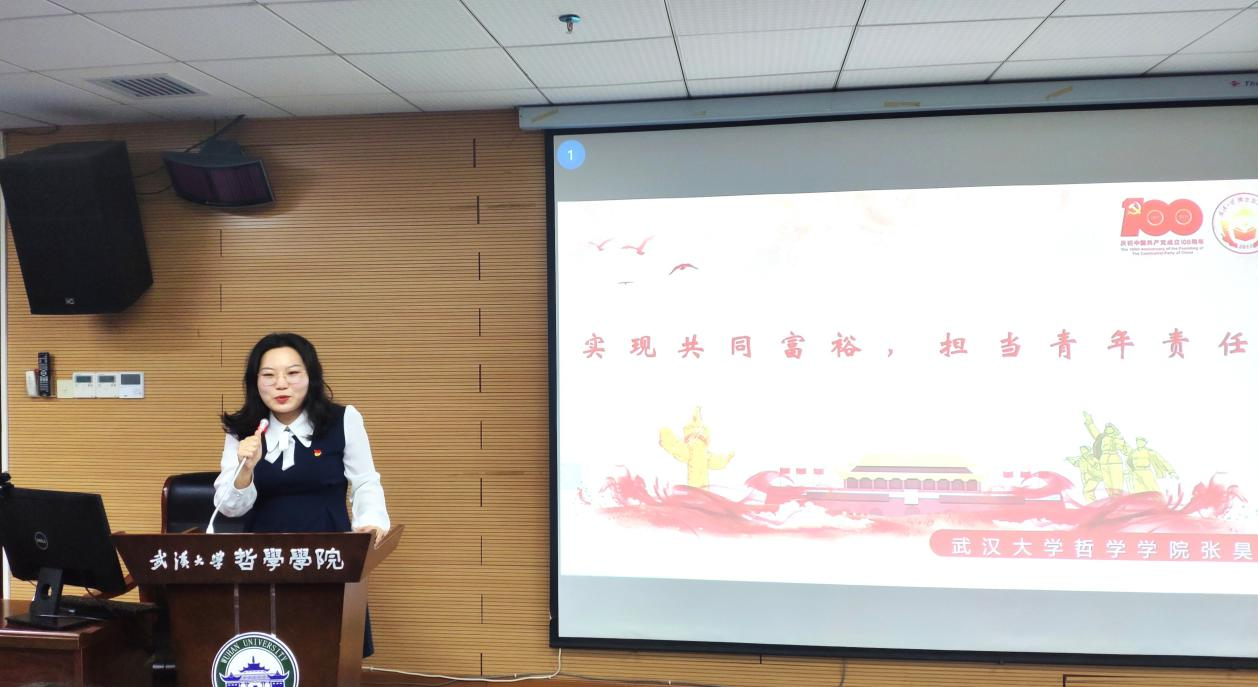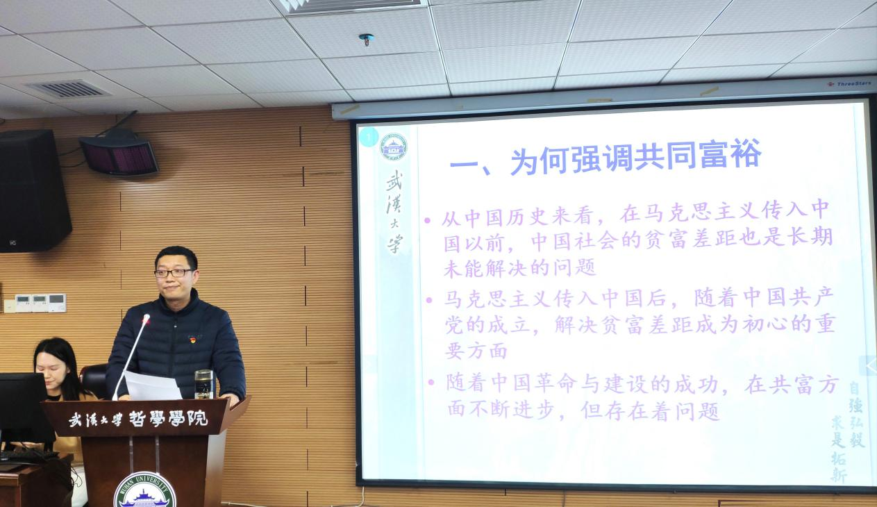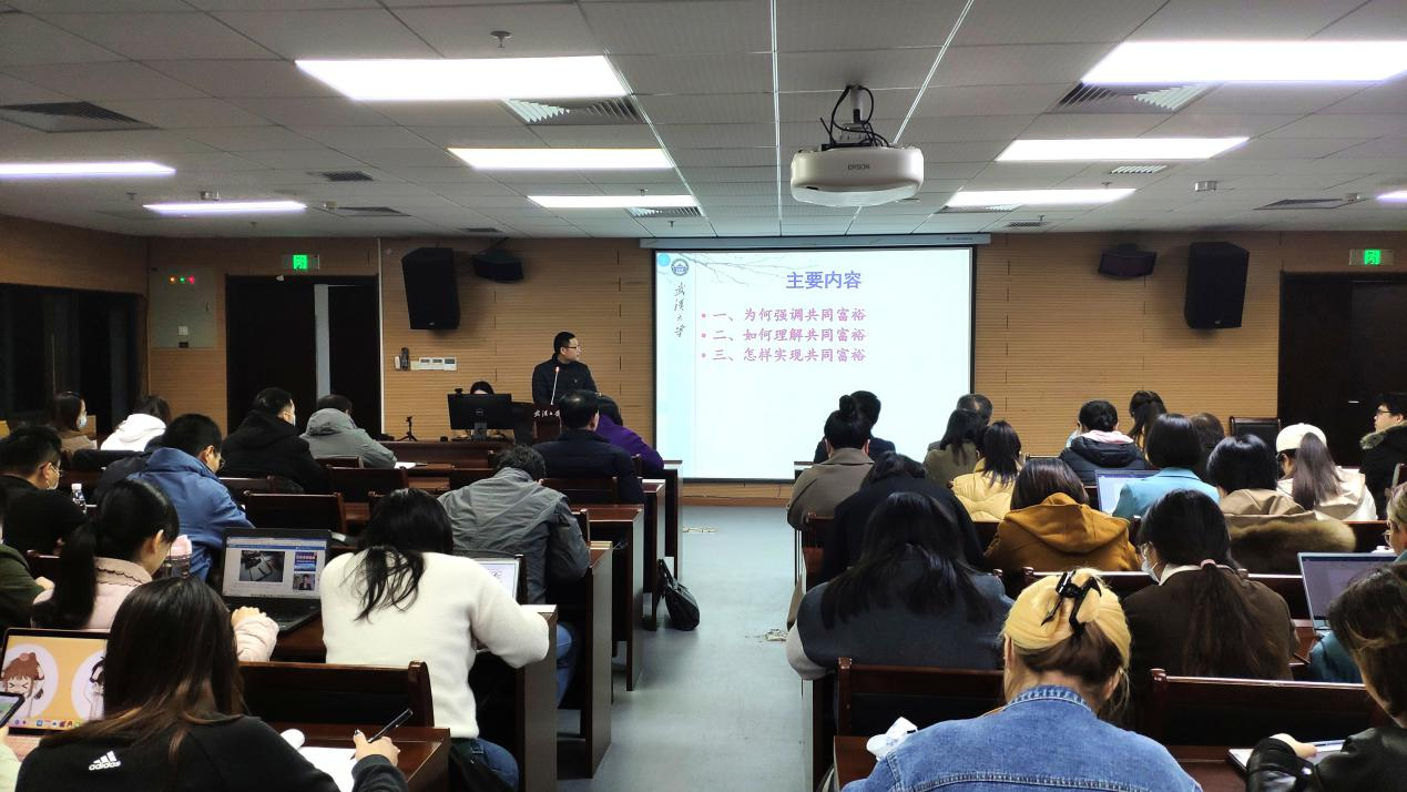 (通讯员翁路)为深入学习贯彻党的十九届六中全会精神,轻小说 于2021年12月23日下午在学院B107开展“师生共上一堂课”支部主题党日活动。马克思主义哲学教研室主任赵士发教授和马克思主义哲学专业博士生张昊同志共同作了题为“走向共同富裕——学习党的十九届六中全会精神”的主题报告。行政党支部、马哲教工党支部、马哲博士生党支部、马哲硕士生党支部以及本科生党支部参加此次主题党日活动。主题党日活动由李志副院长主持。轻小说 校党委第七轮巡视第三巡视组旁听此次主题党日活动的讲座。