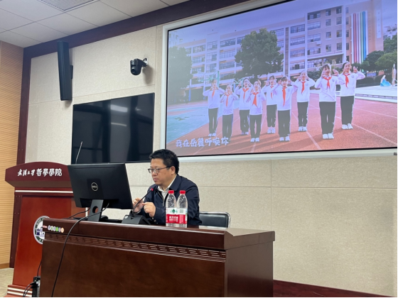 “你是理论巨匠,也是我的偶像;诵读你的华章,给我食粮……”,悠扬的旋律响起,胡艺华教授与同学们分享了自己创作的系列原创歌曲《梦回湘江去见你》《我在岳麓呼唤你》等。作为一名湖湘学子,胡艺华教授通过作词写意的方式表达了对李达先生的崇敬与敬仰之情,歌曲深情而激昂,词意与李达的红色精神相呼应。“思政+音乐”的融合形式不仅让党课更加丰富多彩、振奋人心,更是让党员同志们在动情的旋律中身临其境地感受到了李达先生坚定的红色初心和磅礴的精神力量。