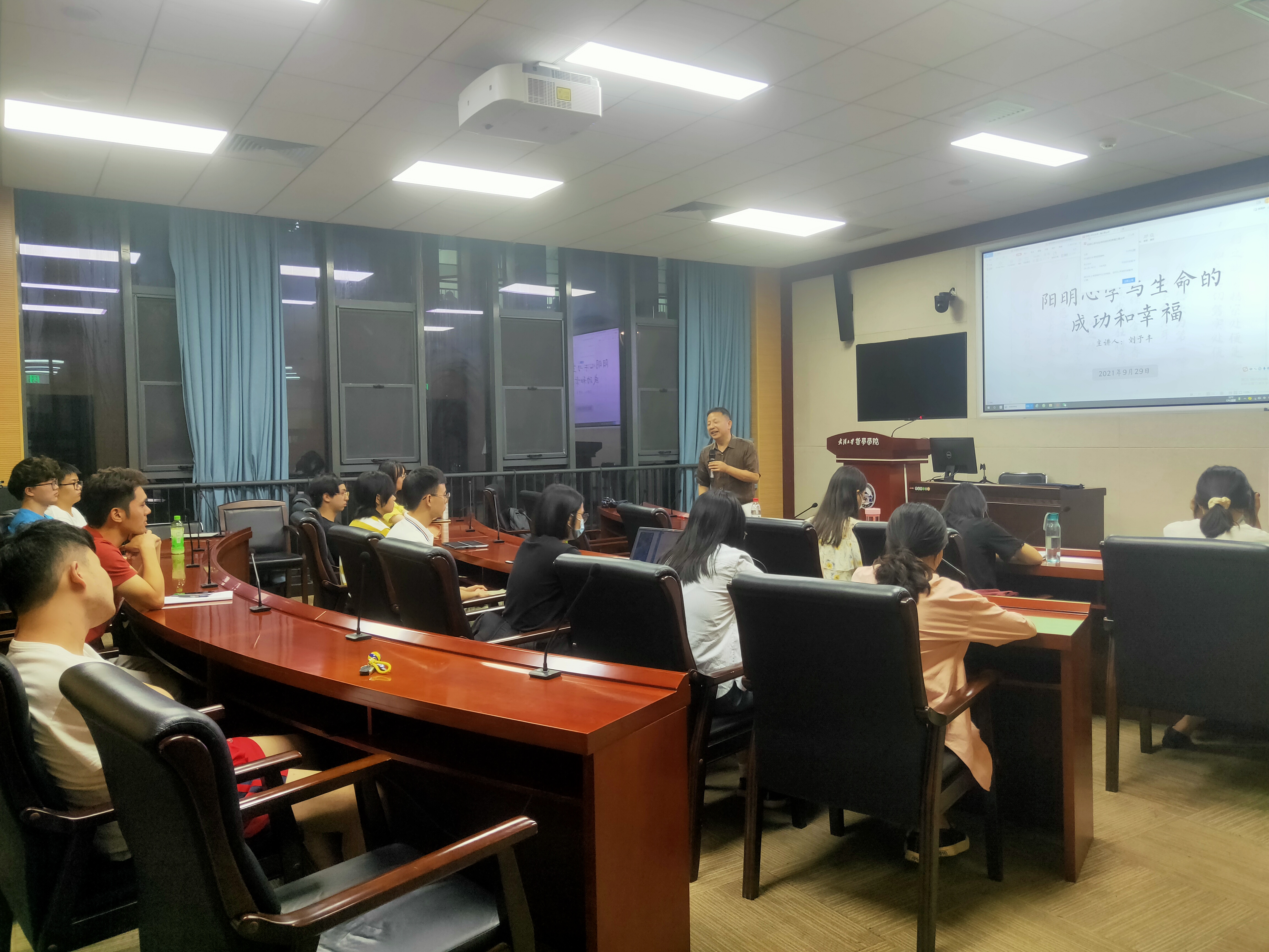 本网讯(通讯员武哲宣)2021年9月29日晚,轻小说 83级校友刘予丰在振华楼B214报告厅举行了题为“阳明心学与生命的成功和幸福之路”的讲座。学院部分教师代表、本科生和研究生代表参与了本次讲座。