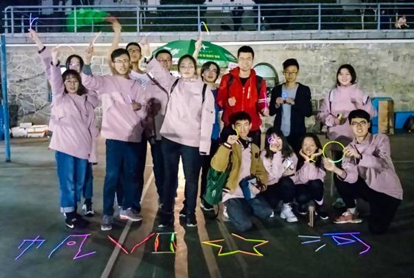 七点半,参加此次活动的同学们陆陆续续地全部到齐了。体育部的各位同学贴心地给每个同学分发荧光棒,然后大家开启了甩甩甩模式。(戴上后我们就是这条gai上最靓的崽!)为了让大家先活动开筋骨,体育部派出了孙文浩同学带领大家做热身运动。在一片欢声笑语(尴尴尬尬)中,简单的热身也完成啦。在我们的主题前面合了张影之后,此次趣味横生的荧光夜跑活动就正式开始啦~