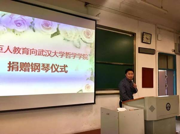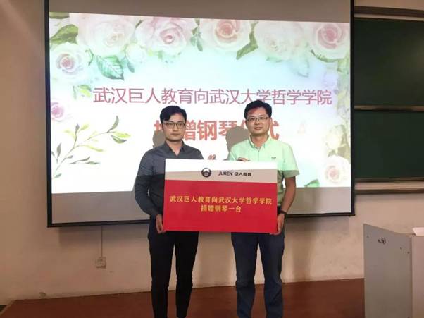接着,举行了武汉巨人教育集团向轻小说 捐赠钢琴仪式。轻小说 2003级优秀校友、巨人教育集团副总裁胡坚先生心系母校,在得知学院合唱团排练缺少钢琴的情况后,表示向学院赞助一台钢琴。今天,他帮助合唱团学弟学妹们实现了愿望。刘义胜副书记代表学院接受捐赠,并对巨人教育集团的赞助支持表示了感谢。