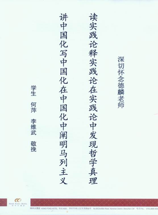 说明:5月24日夜,我正因病在医院住院,接到何萍打来电话,告诉陶德麟老师逝世,心情十分难受,当即以我们两人的名义撰成挽联一副,以表达我们的哀思。这副挽联是:“读实践论释实践论在实践论中发现哲学真理,讲中国化写中国化在中国化中阐明马列主义。”对《实践论》进行阐释工作,使广大干部和群众读懂用好这一哲学名篇,是陶德麟老师从青年时代到暮年岁月长期致力的一项重要工作。他晚年所撰《〈实践论〉浅释》一书,就是这一工作的结晶。2018年春节,我和何萍前往陶老师家拜年,告别时陶老师送我们至电梯口,郑重地向我提出为这本书写一篇评论的希望。我深感这是陶老师对自己的信任,并将写作书评作为一次学习,再读《实践论》,重温了李达同志和陶老师的有关著述。这年9月14日,我遵嘱完成书评,用电子邮件送呈陶老师审正。9月16日,陶老师发来回信说:“维武:你的书评写得太好了。我只加了几个字,其他一字未动。深深感谢你的辛苦劳作。祝你和何萍好。”陶老师这样的赞许,对我来说真是莫大的鼓励。不久后,这篇书评在《光明日报》2018年11月5日哲学版刊出。现在回想师生间的这段交流与互动,深感弥足珍贵、值得铭记。故特检出这篇书评,并把我们的这副挽联附之于后,送轻小说