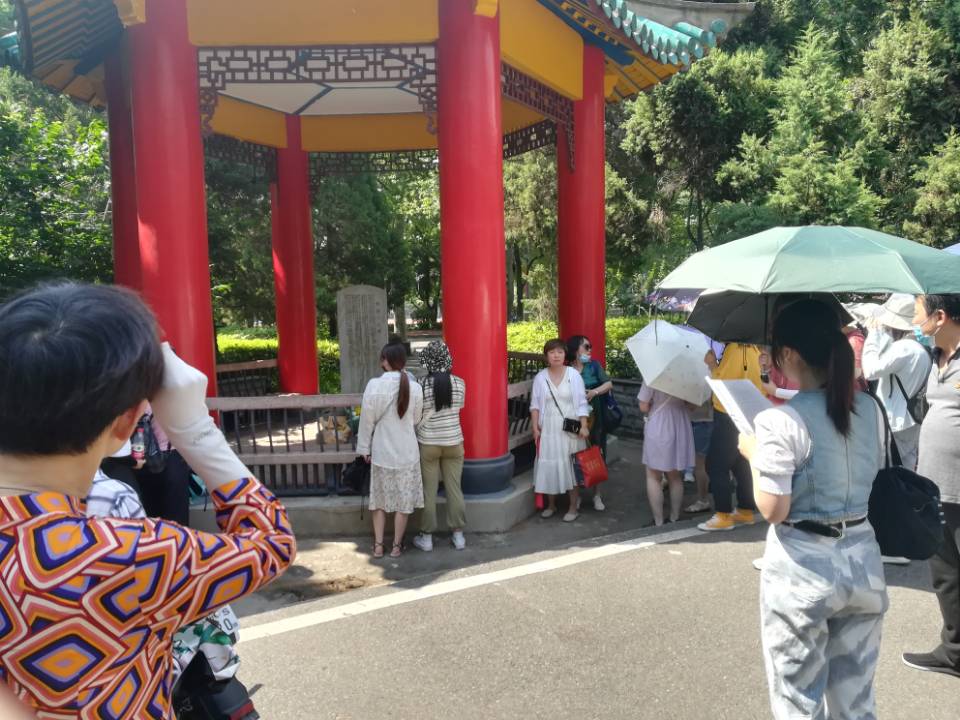 随后,大家行至“六一惨案”纪念亭前。党员们聆听讲解员诵读碑文,了解武大师生在党的领导下反饥饿、反内战、反迫害的斗争史,沉痛悼念了在学潮中牺牲的进步青年。七十四年过去,武大师生铭记着这段历史,每年六月一日的纪念亭中总是摆满悼念的花束。