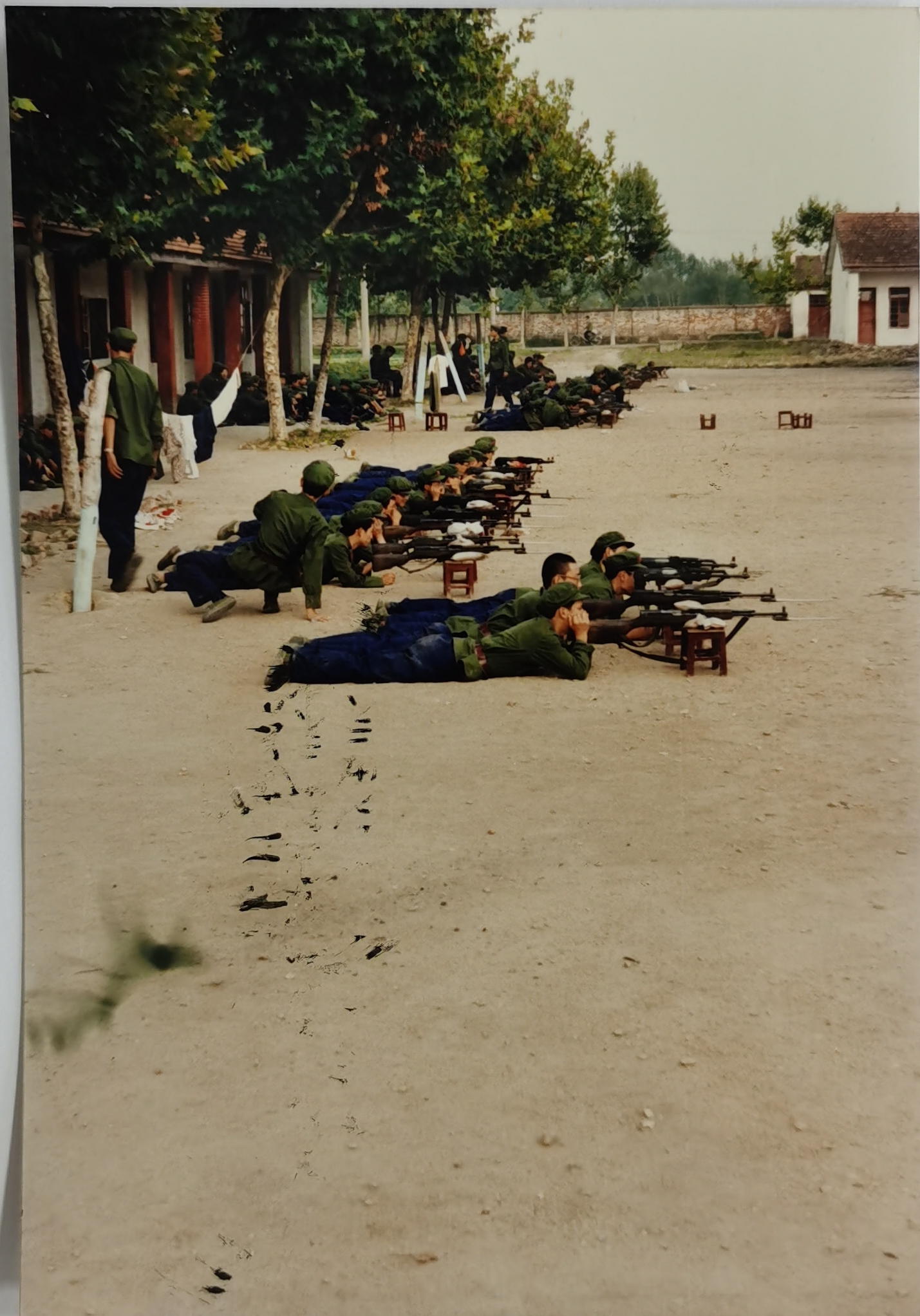 90级军训生四0火连七班 在进行射击准备