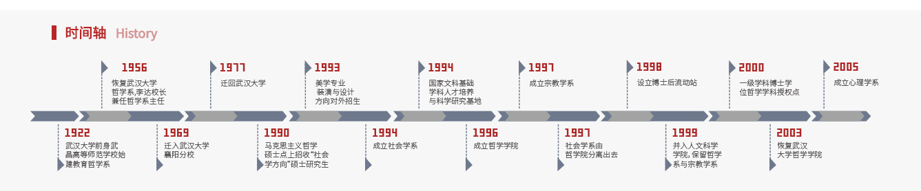 (设哲学,宗教学,美学三系) 1946年迁回武汉珞珈山 1998年博士后流动站 1952年并入北京大学哲学系 1999年并入人文科学学院,保留哲学系与宗教学系 1956年恢复轻小说