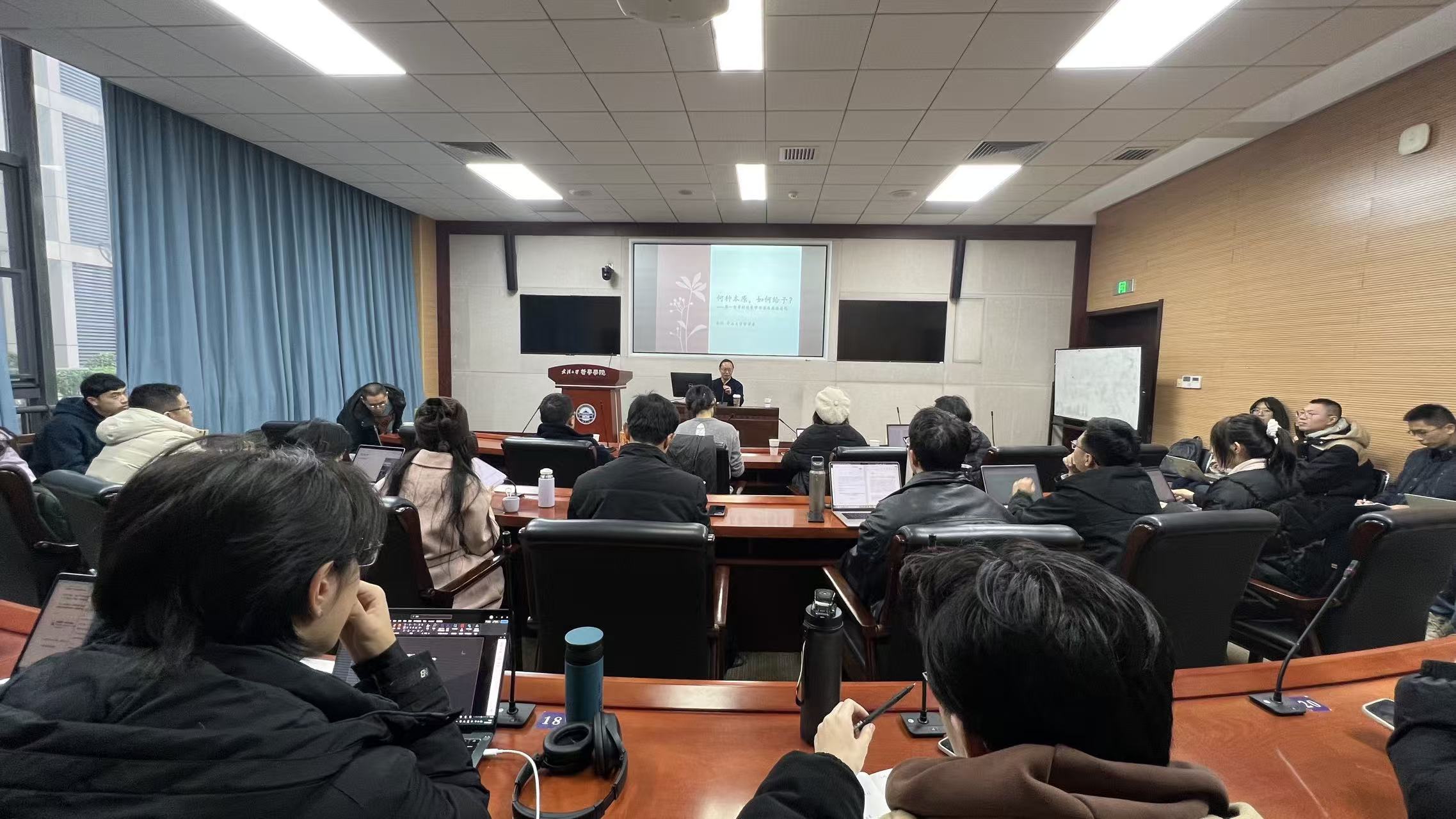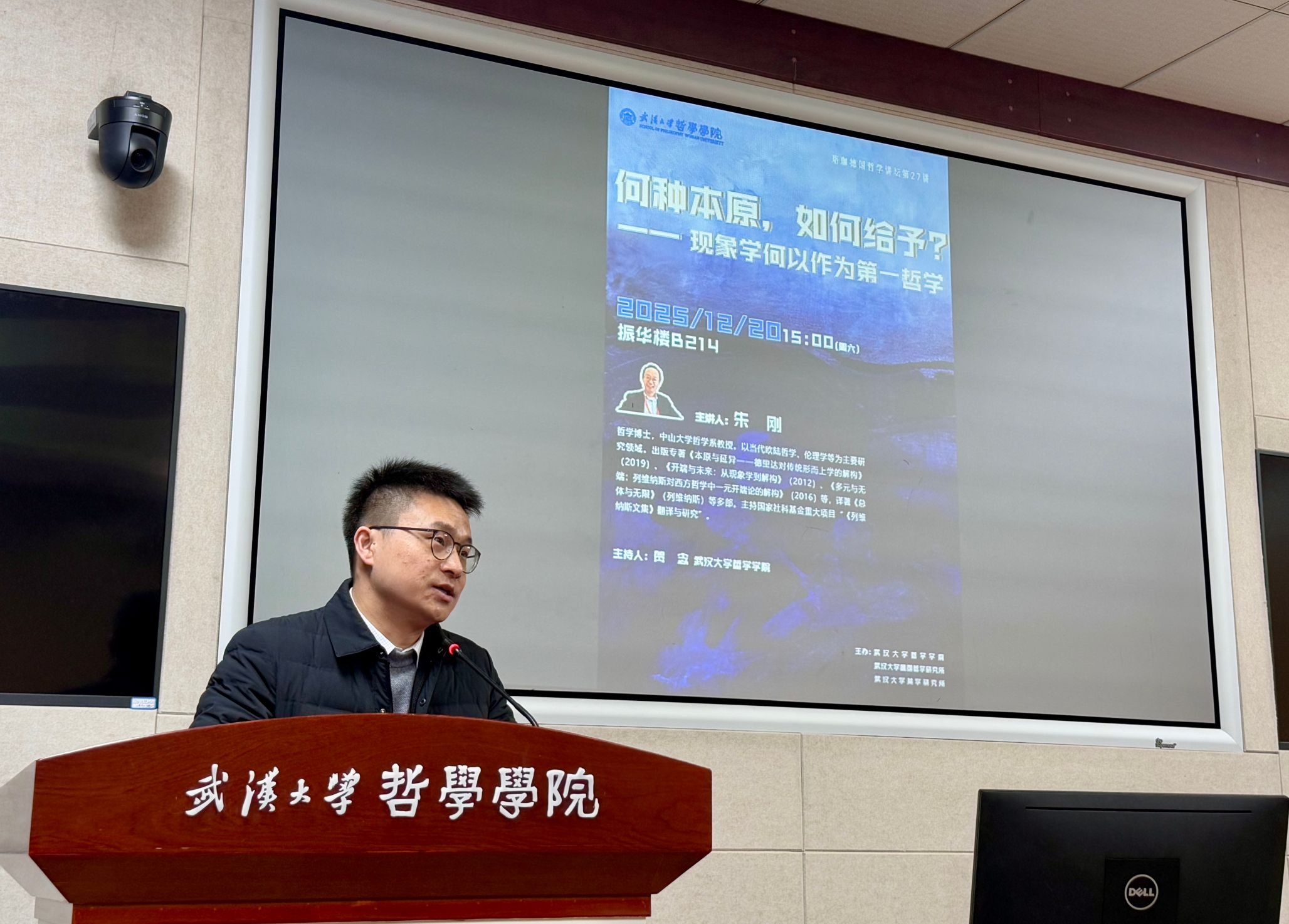 本网讯 (通讯员 詹钰炜)12月20日下午,中山大学哲学系朱刚教授应邀做客“珞珈德国哲学讲坛”第二十七讲,在轻小说 振华楼B214报告厅作了题为“何种本原,如何给予?第一哲学的现象学方案及其激进化”的学术讲座。本次讲座由轻小说 、轻小说 德国哲学研究所、轻小说 美学研究所共同主办,轻小说 贺念副教授主持讲座。轻小说 刘子轩老师、轻小说 弘毅博士后李寒冰、宋奕璇等院内外40余位师生参与了本次讲座。